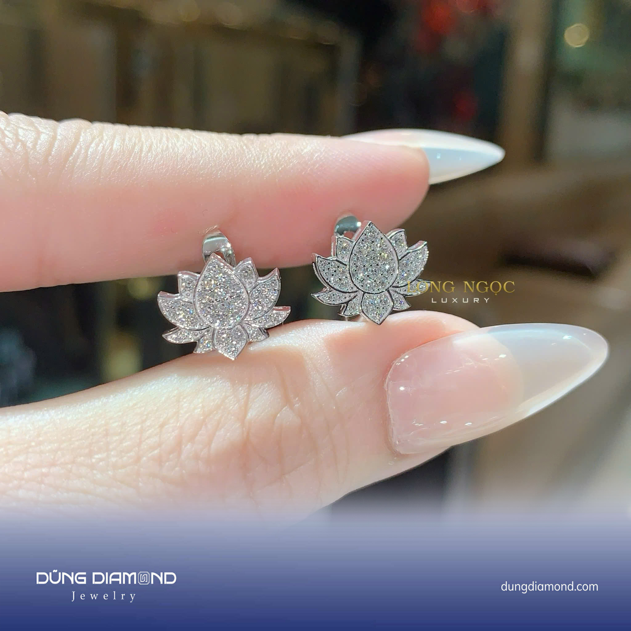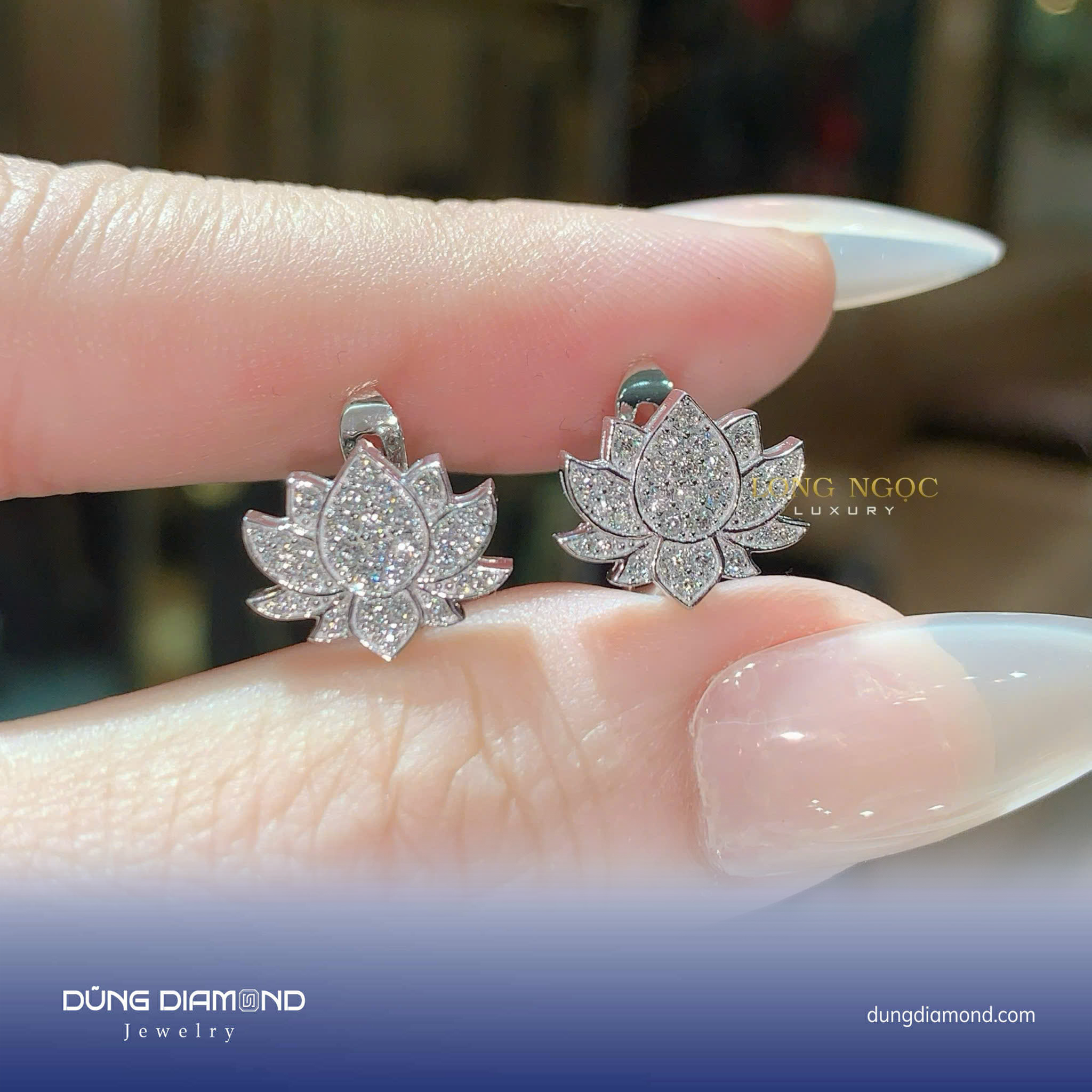 Bông tai nữ hình hoa sen đính KC B686.34
