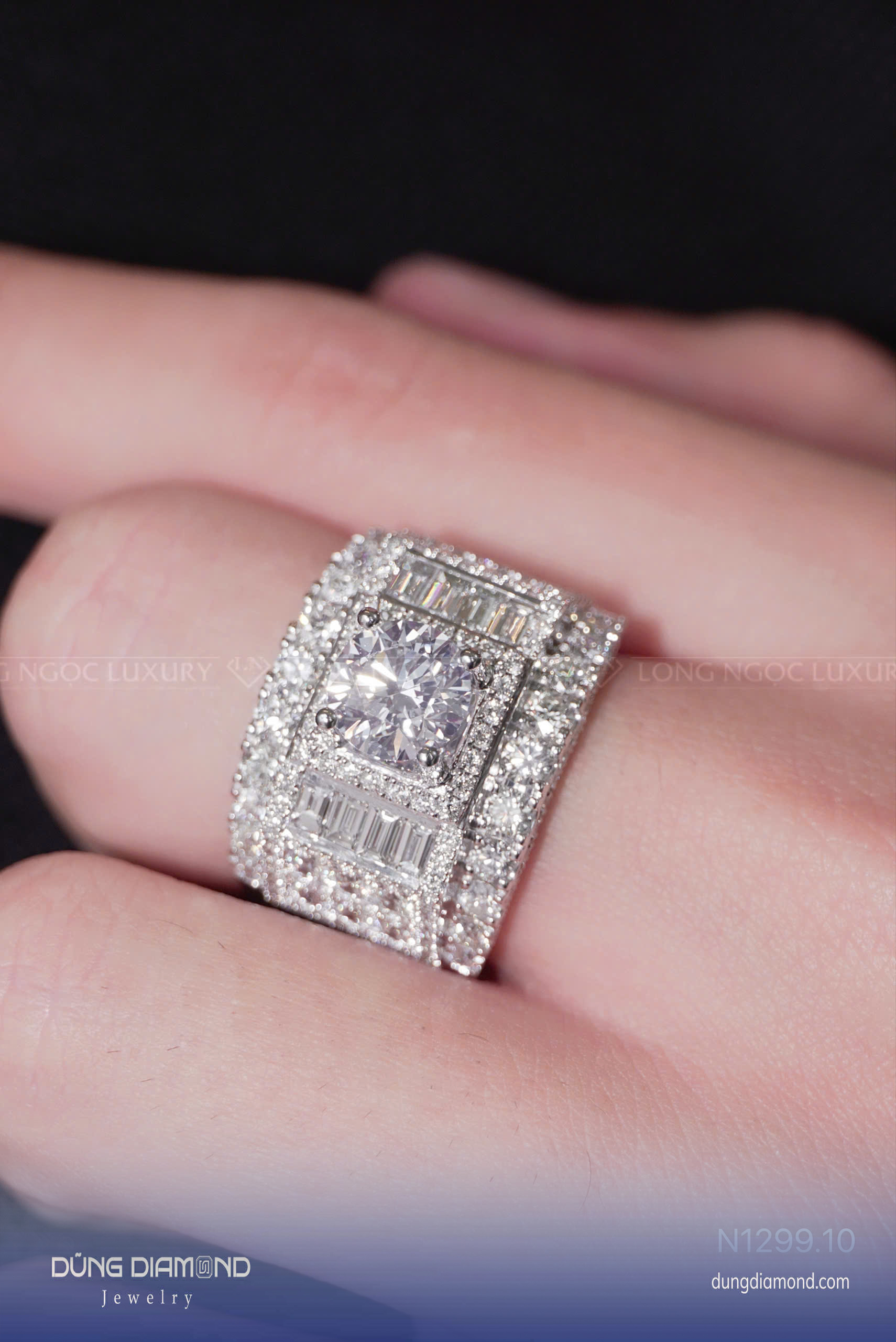 Nhẫn đính full kim cương Alpha Prime N1299.10
