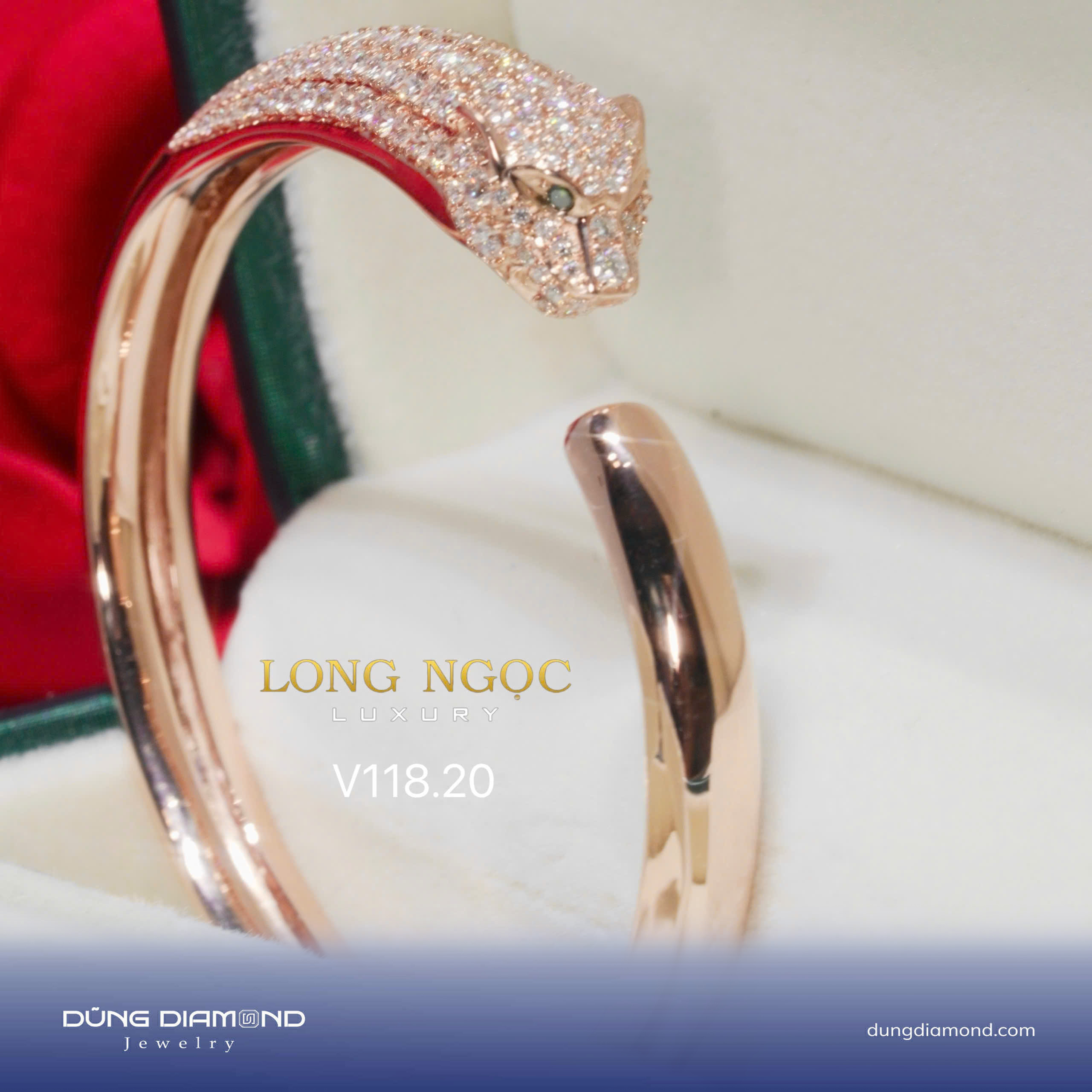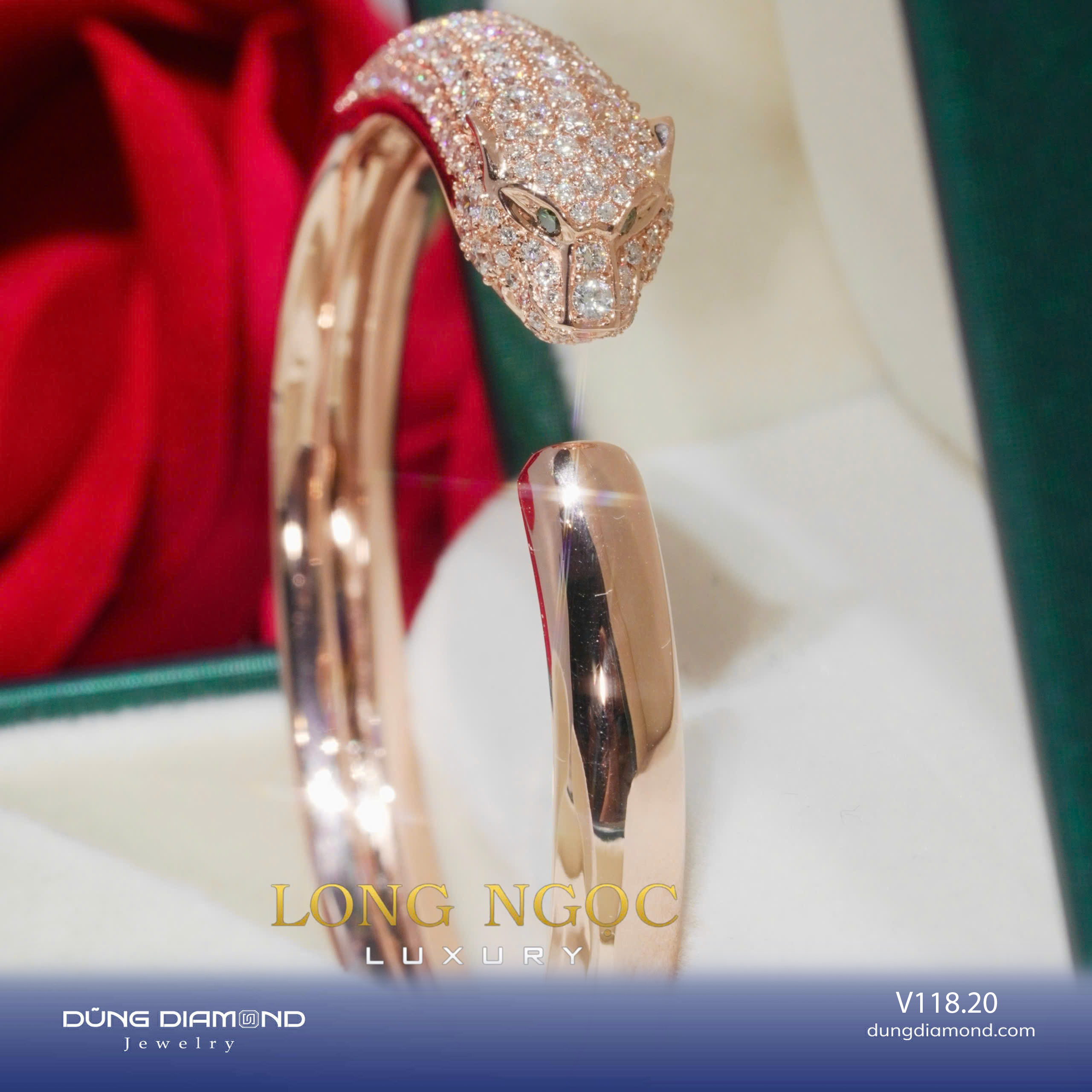 Vòng tay dáng báo hoa mai đính KC V118.20